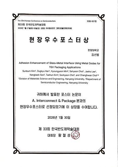 Changhwan Choi, "How to modulate threshold voltage(Vth) using ALD HKMG Gate Stack for advanced logic transistor and DRAM peripheral transistor", 33ȸ Çѱ¹¹ÝµµÃ¼Çмú´ëȸ (KCS), Á¤¼± ÇÏÀÌ¿ø ±×·£µå È£ÅÚ, 2026.01